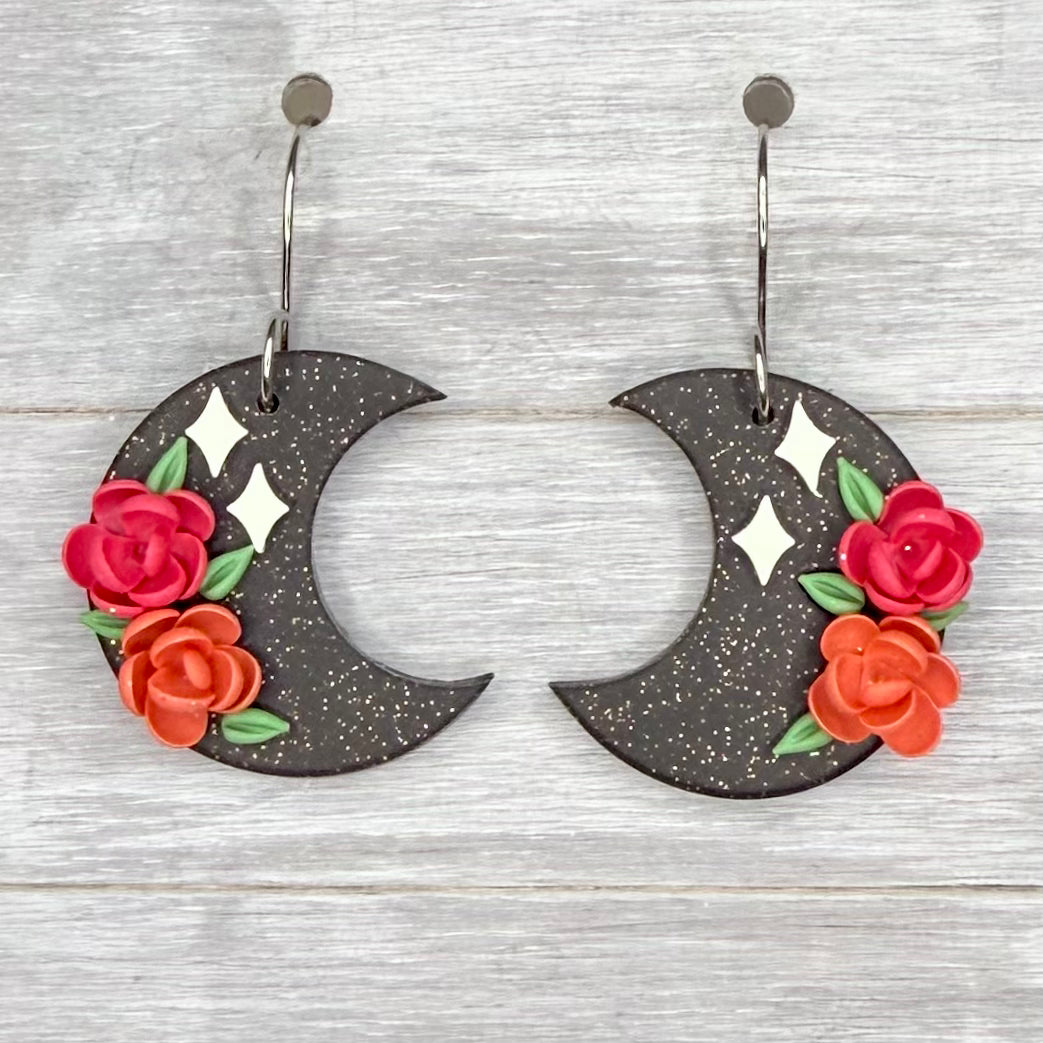 Pink & Orange Floral Moon Dangles