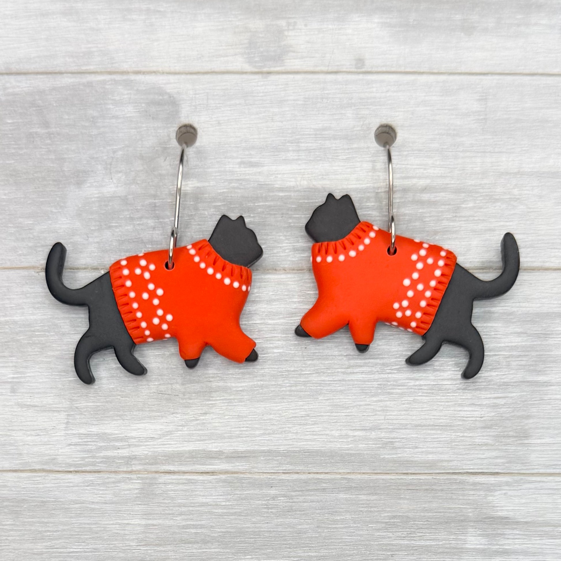 These dangles are handmade with polymer clay and high quality stainless steel findings. They are about 2.5 inches long.